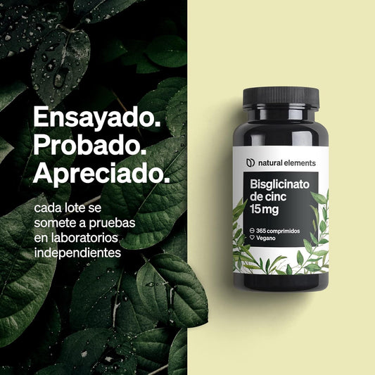 Zinc Bisglicinato 15Mg - 365 Comprimidos (1 Año) - Para El Pelo, Piel, Uñas Y Reforzar Sistema Inmunológico - Bisglicinato De Zinc Alta Biodisponibilidad - Probado En Laboratorio Y Vegano